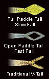 The tail is designed so that you can use it three different ways easily - with the full paddle type tail, a hollow paddle tail or a forked tail. Those of you who have fished with these type baits will recognize how much difference the tail makes on the action. I will give you a tip as to one way it works.